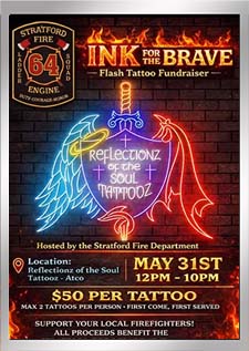 Join us as we team up with the talented artists at Reflectionz of the Soul Tattooz in Atco for a flash tattoo fundraiser benefiting the Stratford Fire Company.